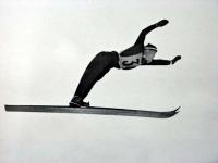 Norweski skoczek Birger Ruud w idealnym skoku. Lądowanie telemarkiem doprowadził do perfekcji. (fot. ze zbiorów Muzeum Narciarstwa w Oslo) |