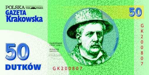 Tego lata „Krakowska” wprowadziła do obiegu specjalne dutki. Wycinajcie banknoty o różnych nominałach (kolejny obok) i wymieniajcie je w letniej redakcji naszej gazety na Krupówkach, obok oczka wodnego, w godz. 10–18. Dziś 150 dutków możecie wymienić na bajkę „Byli sobie wynalazcy”, 200 dutków na film fabularny (m.in. „Rekrut”, „21 gram”), a 1000 – na sześć filmów. Przypominamy – jedna osoba może dziennie odebrać jedną nagrodę, Zabawa trwa do wyczerpania nagród. Zapraszamy!